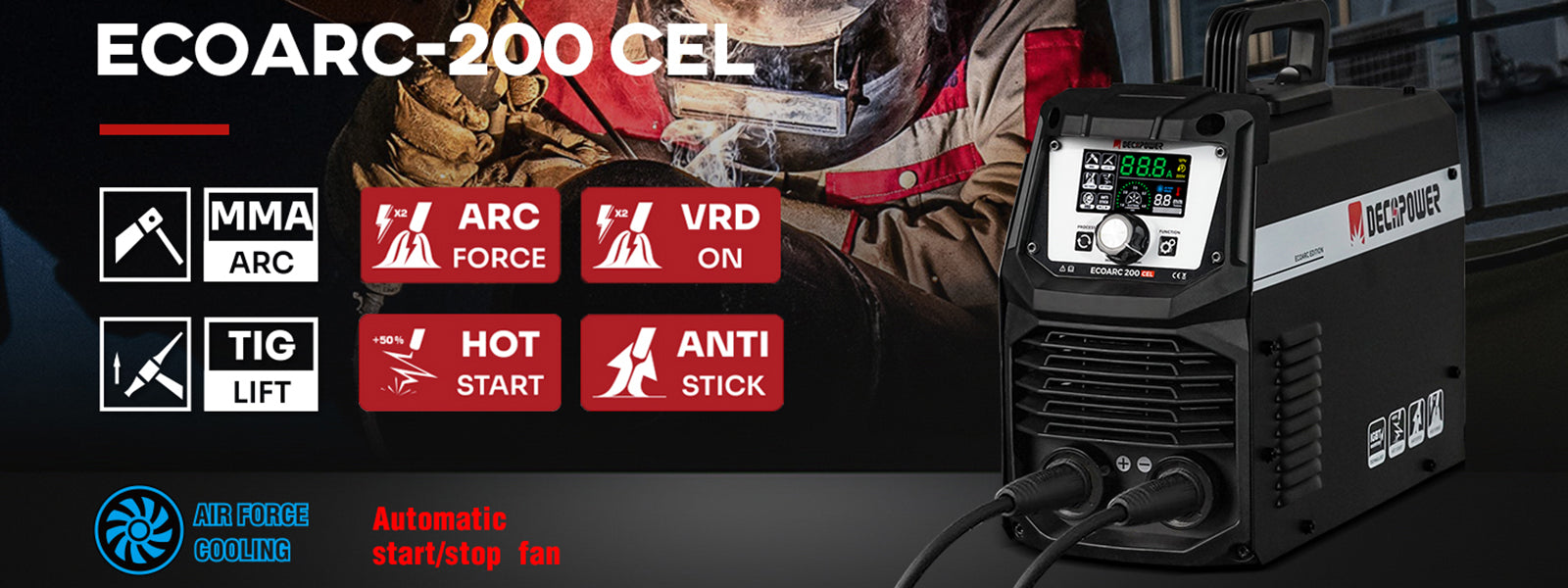 Current output Max: TIG=200A / MMA=200A