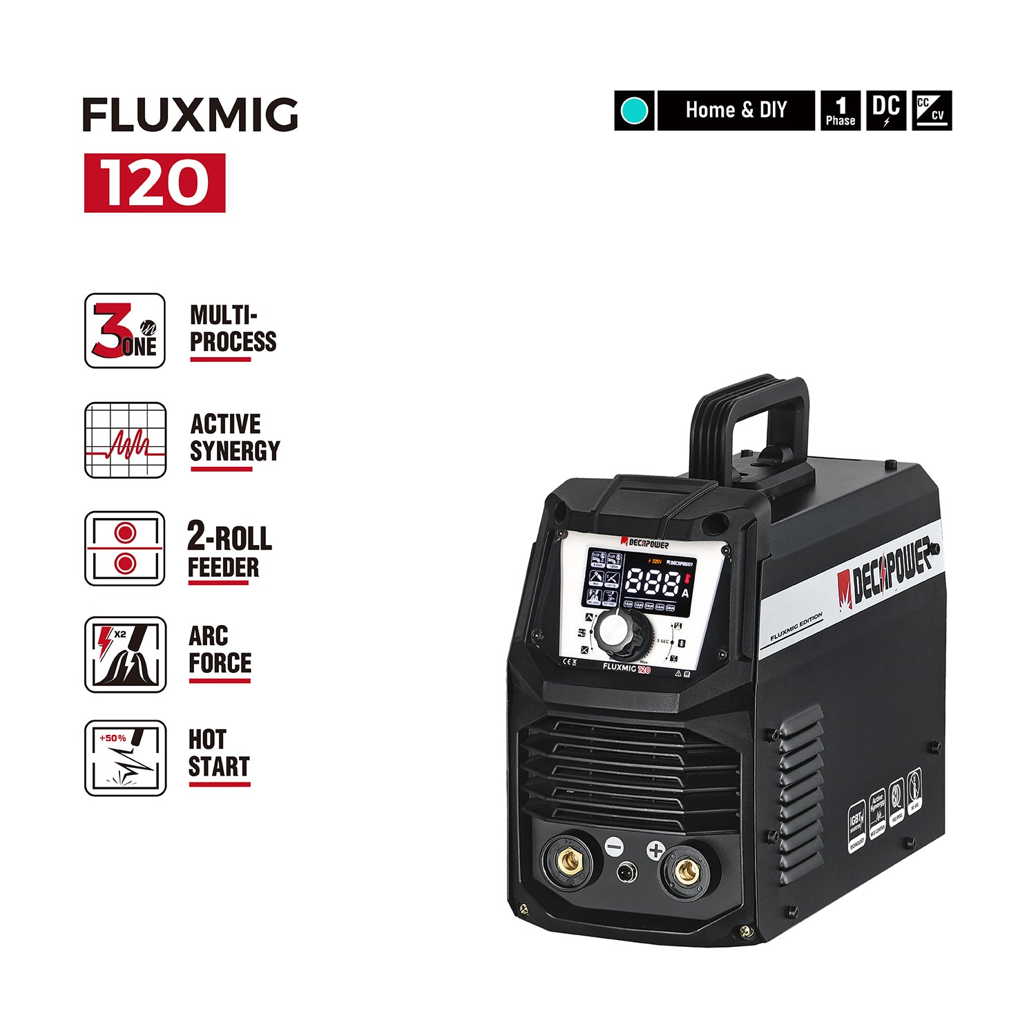FLUXMIG-120 Flux Core Gasless/Lift TIG/Stick 3-in-1 MIG Welder(EU PLUG / 220V)